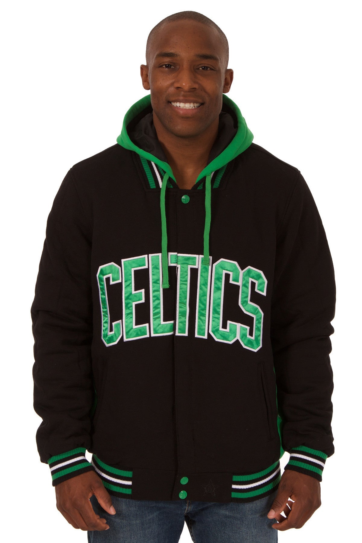 Boston Celtics fleece hooded jacket in black-green with nylon reverse and embroidered logos with satin appliqué.