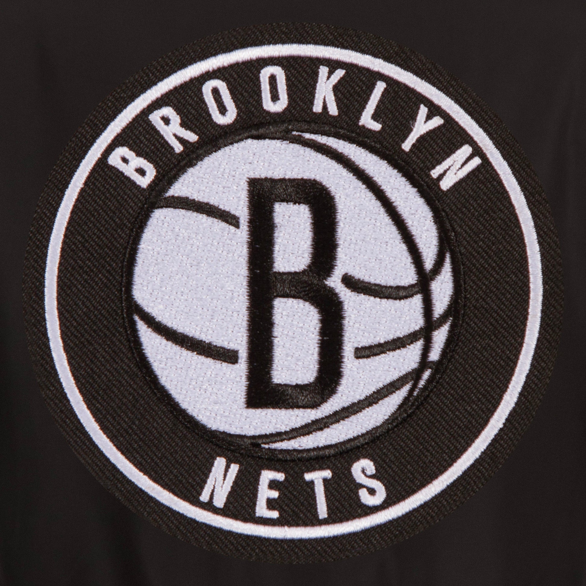 Brooklyn Nets reversible fleece jacket with Faux Leather sleeves in black-white with nylon lining and embroidered logos. (Front Logos Only)