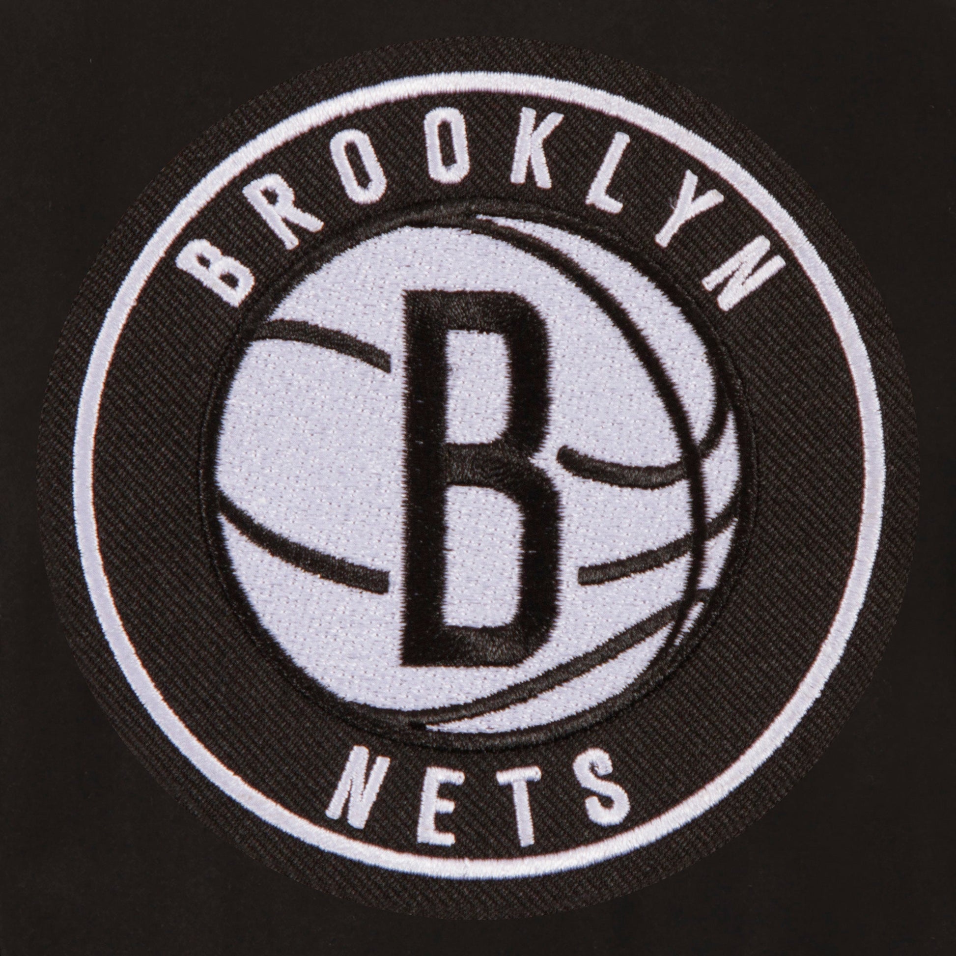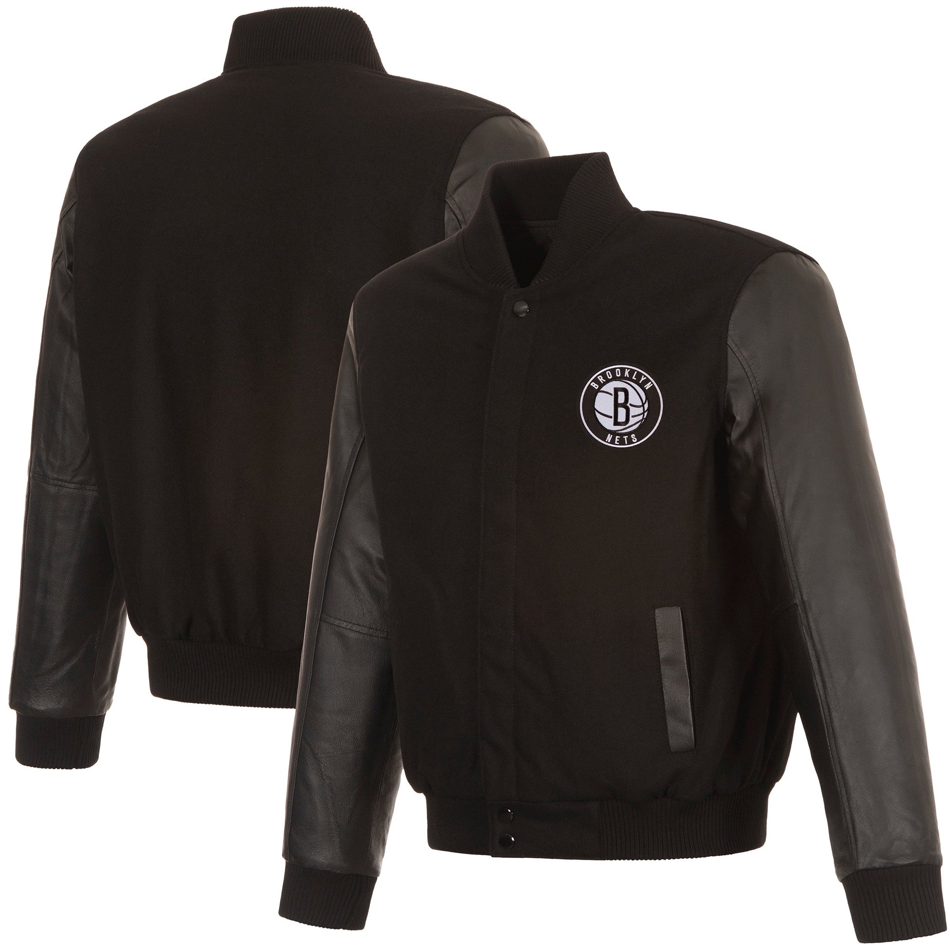 Brooklyn Nets reversible wool and leather jacket in black with nylon lining and embroidered appliqué patches. (Front Logos Only)