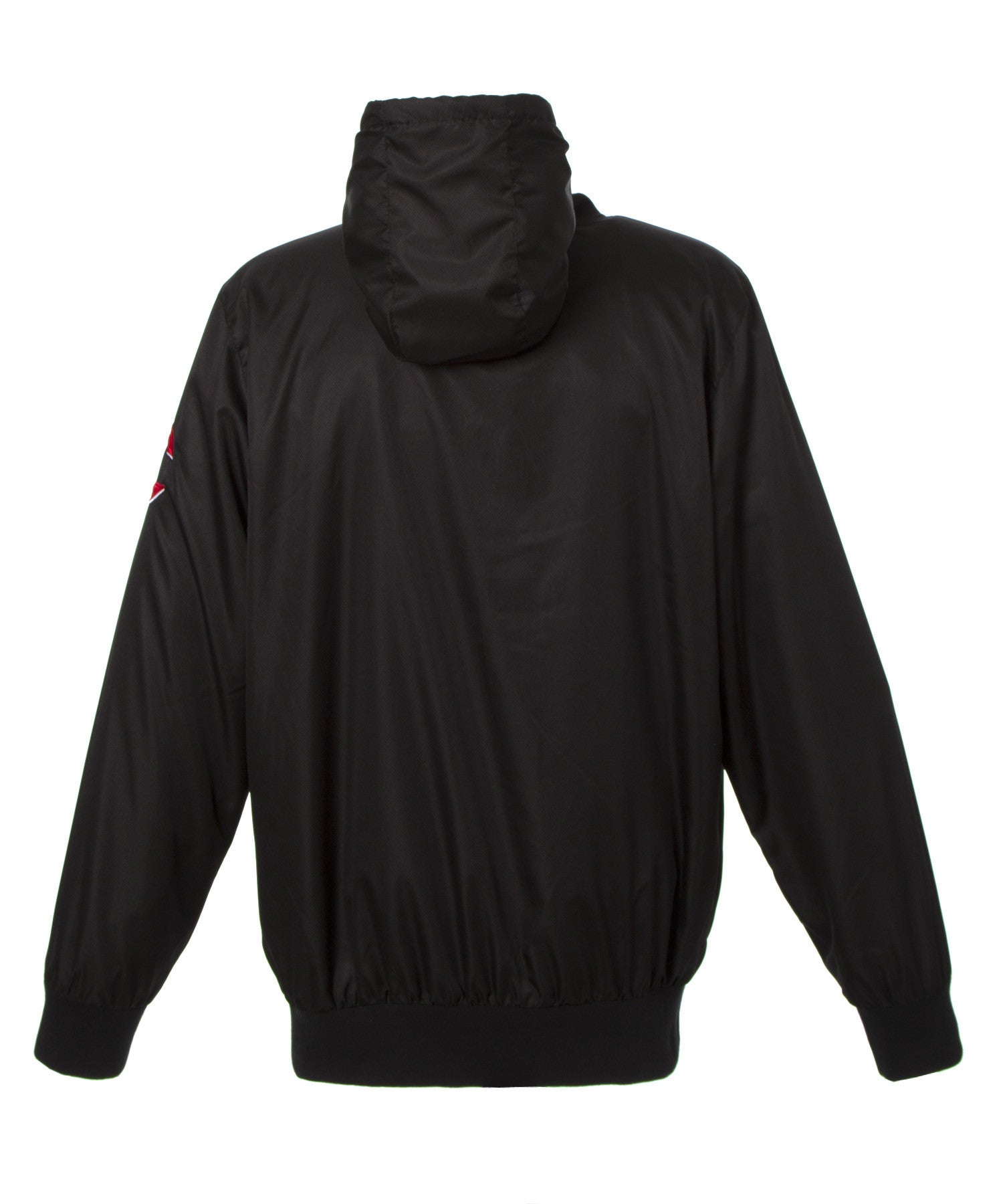 Cincinnati Reds ripstop nylon hooded jacket in black with mesh lining and embroidered logos with polyester appliqué.