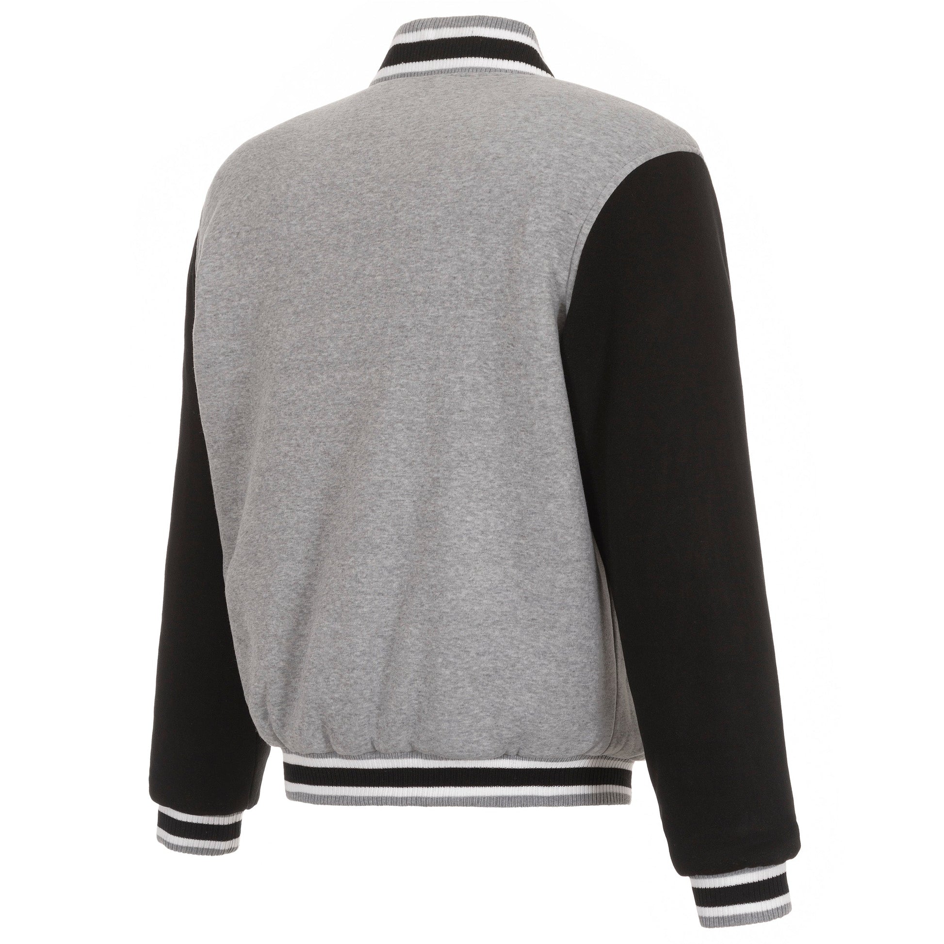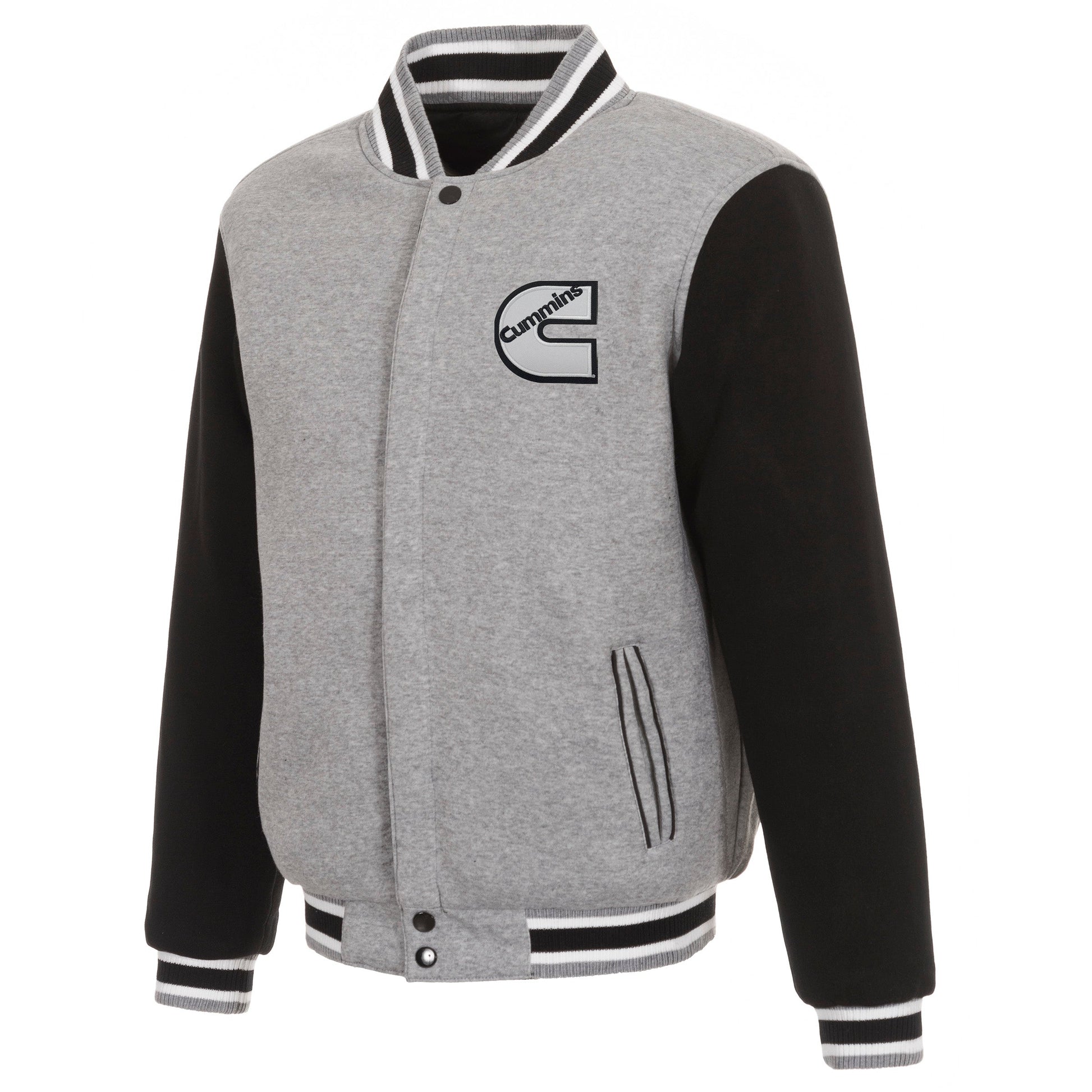 Cummins reversible fleece two-tone jacket in black-grey with nylon lining and embroidered logos.