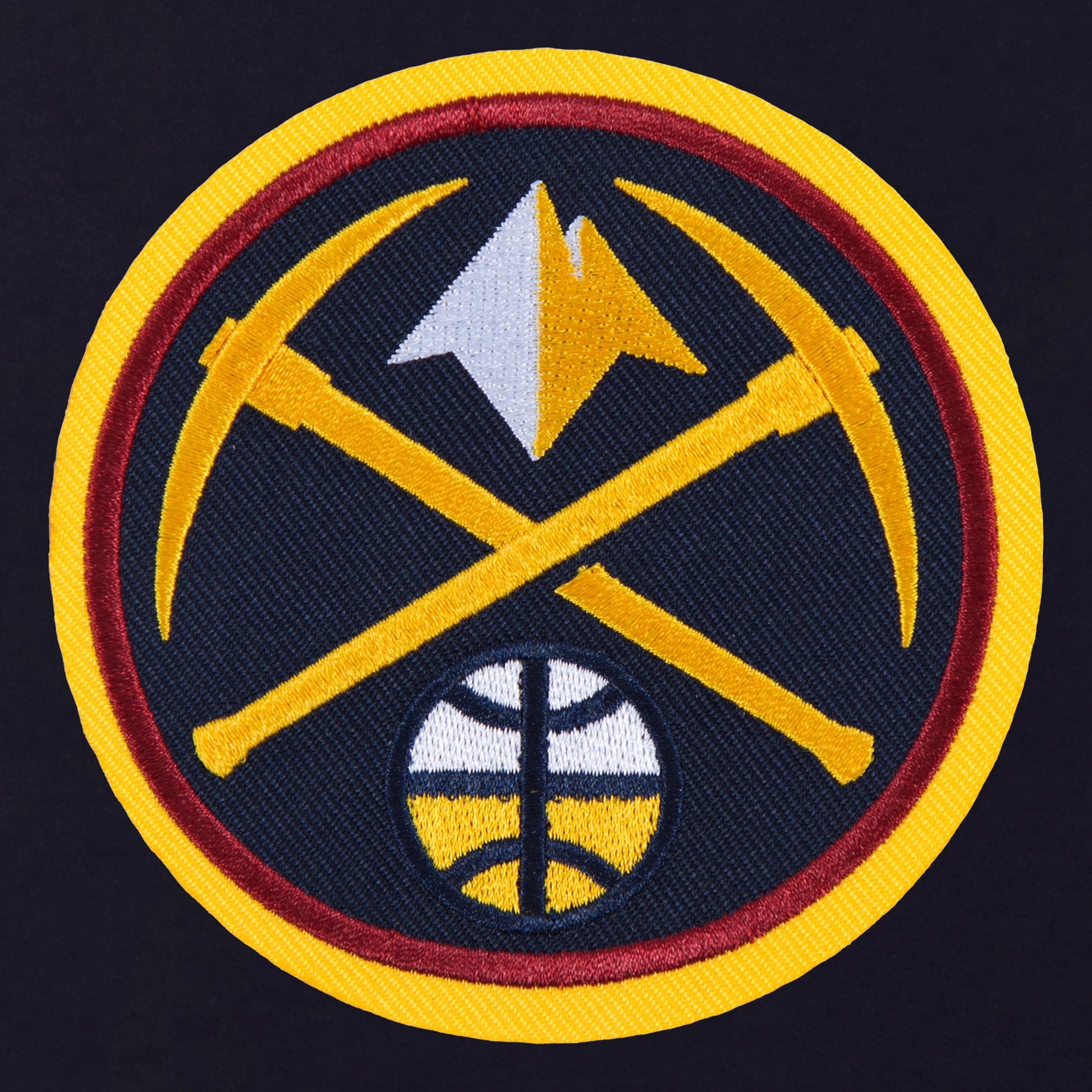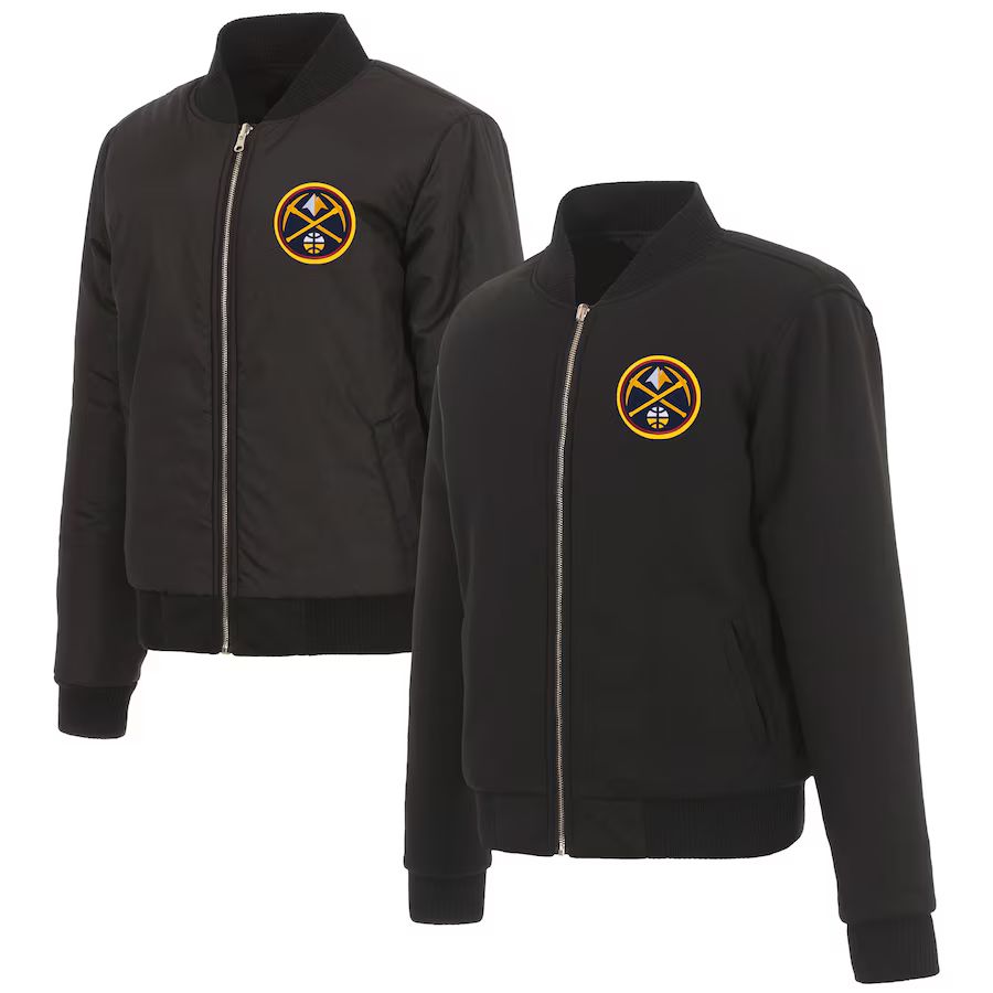 Denver Nuggets Ladies reversible fleece jacket in navy with embroidered logos. Assembled in the USA. 100% polyester body, reverse nylon side, metal zip closure.