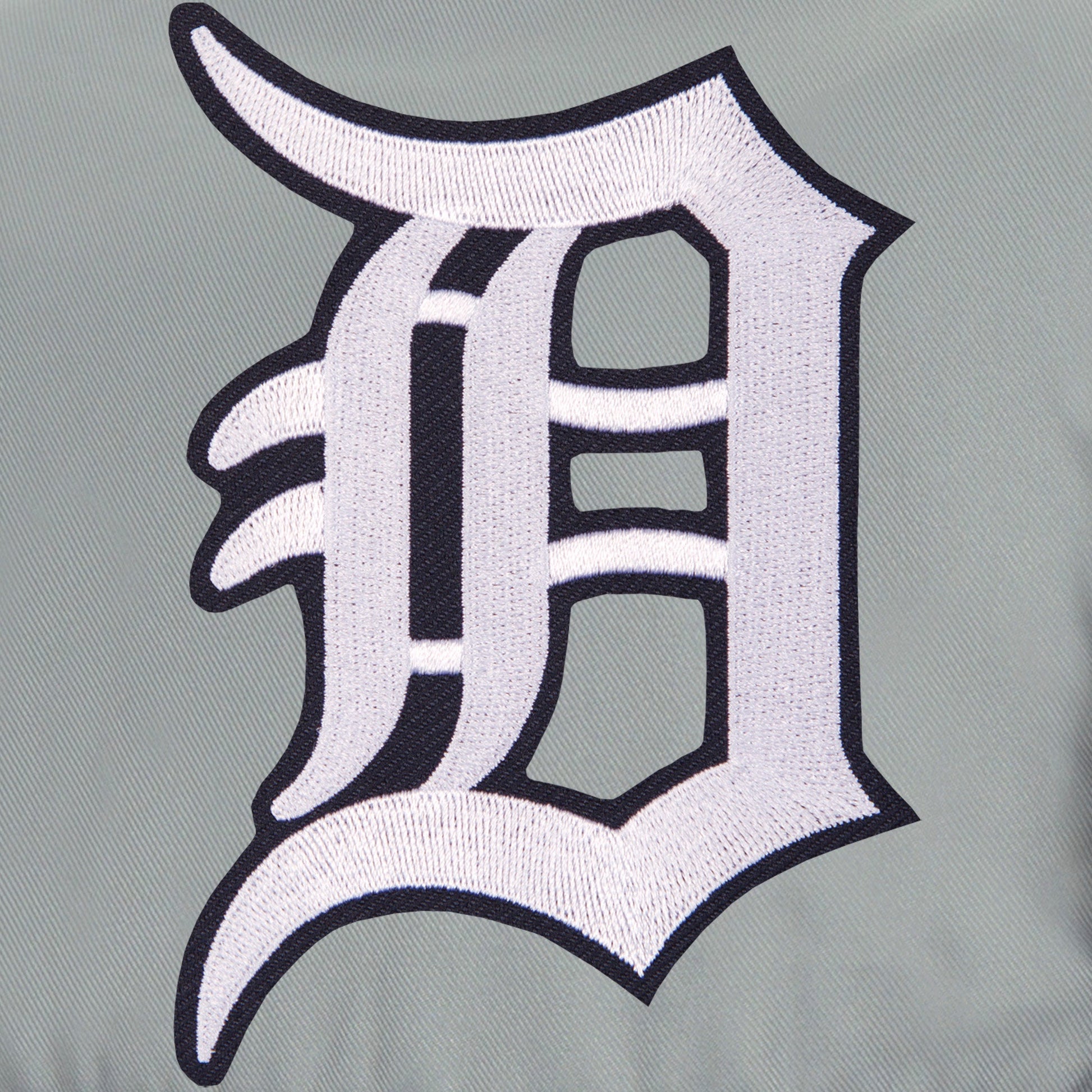 Detroit Tigers kids poly-twill jacket in navy-gray with quilted nylon lining and embroidered appliqué logos.