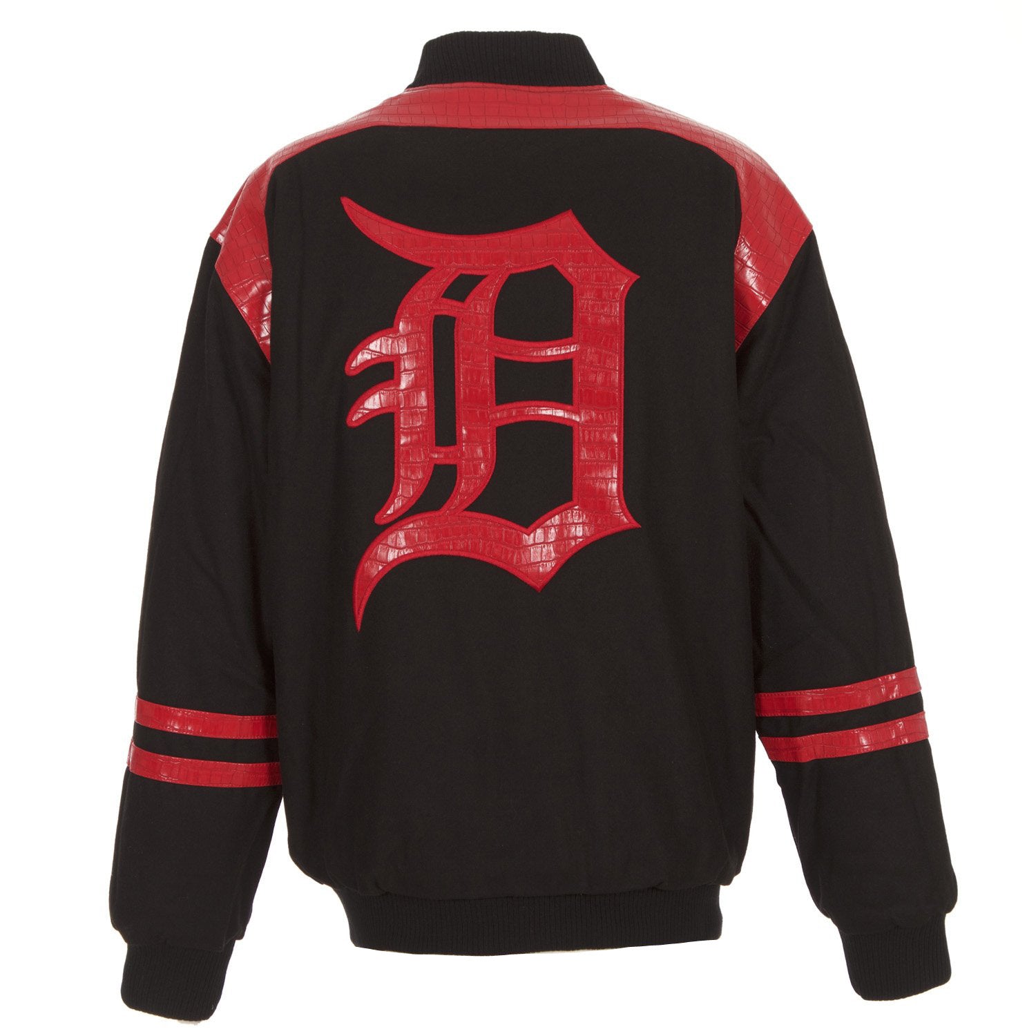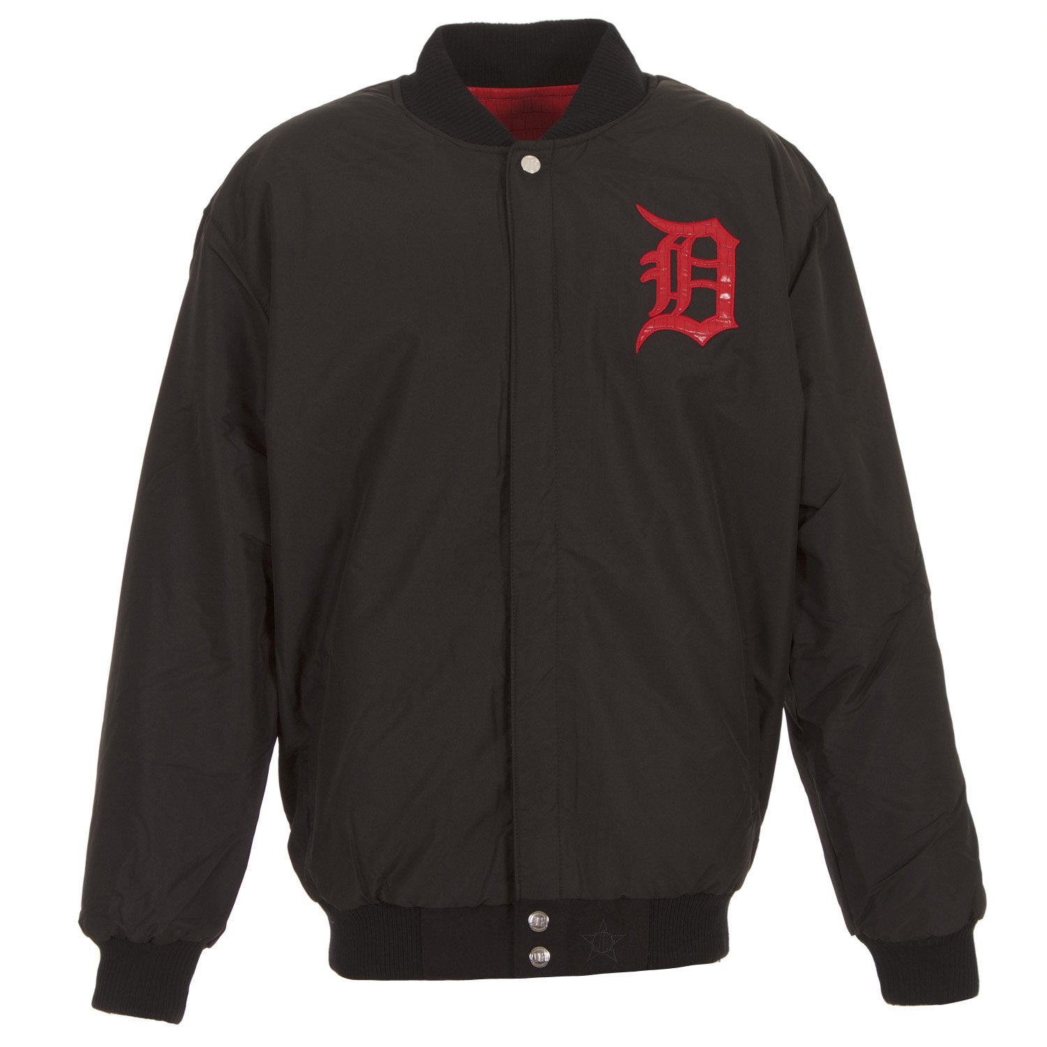 Detroit Tigers reversible wool jacket in black-red with alligator logos and inserts.