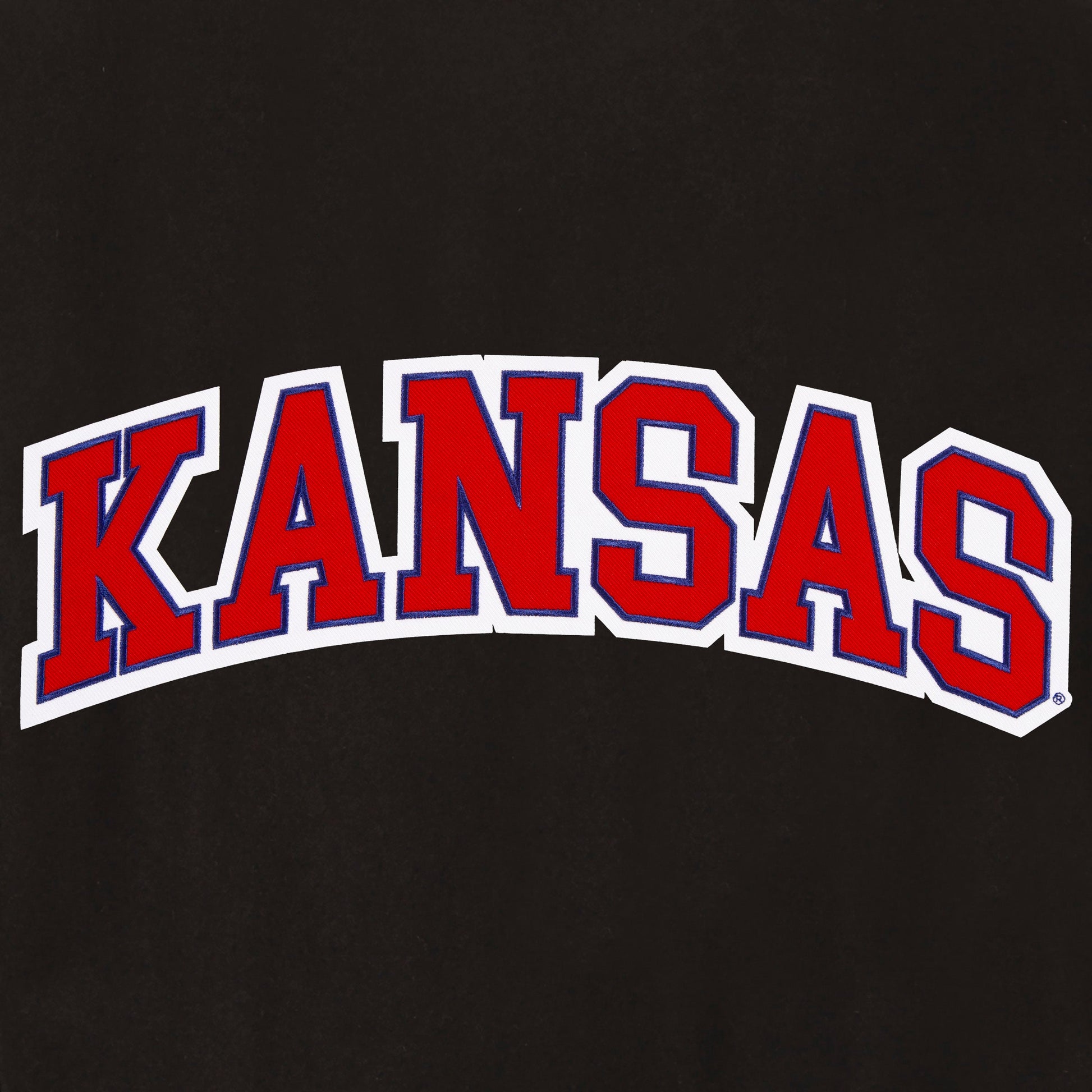 Kansas University Reversible Wool and Leather Jacket with quilted nylon lining in black with embroidered logos. Assembled in the USA. 55% Wool 45% polyester body, 100% leather sleeves. Snap button closure.