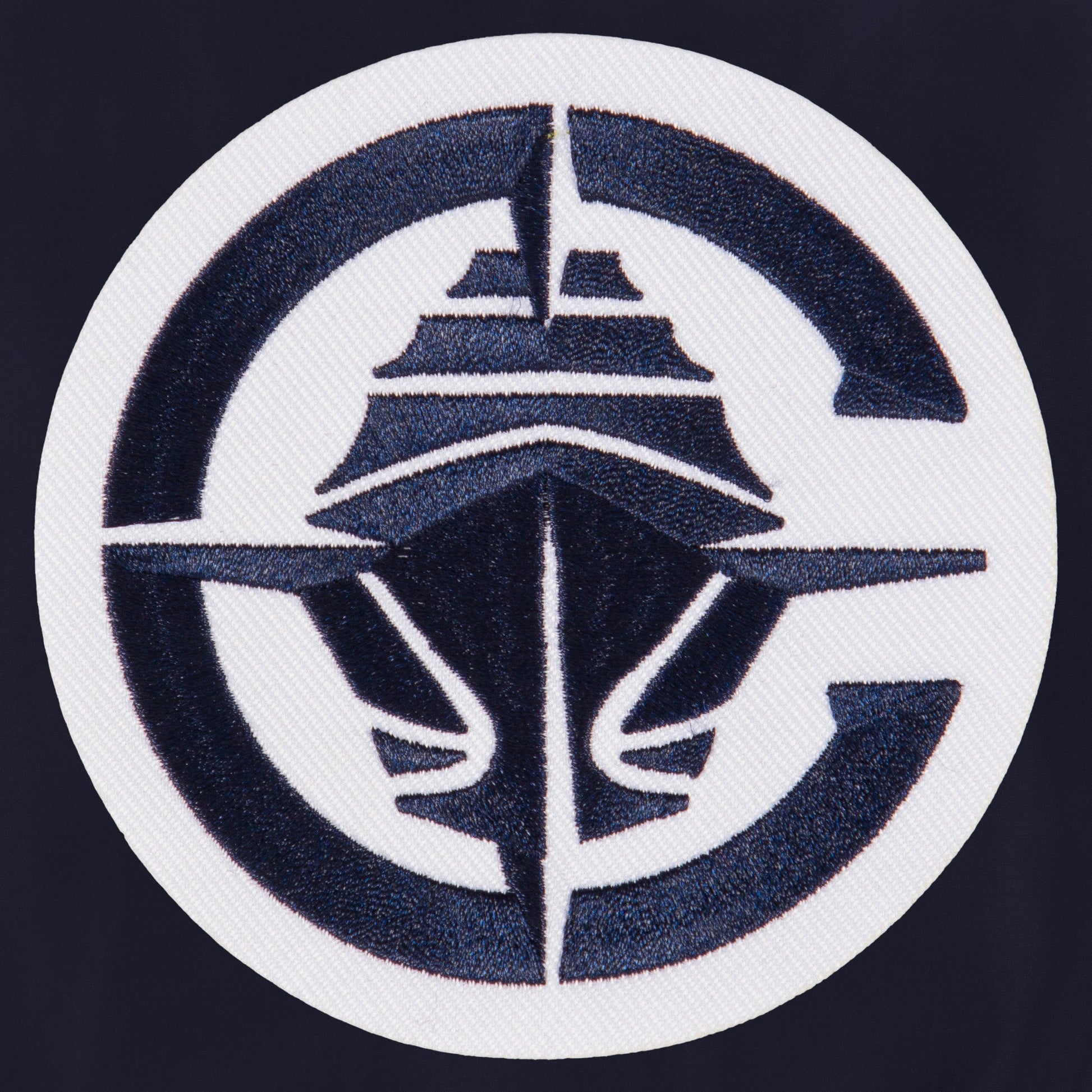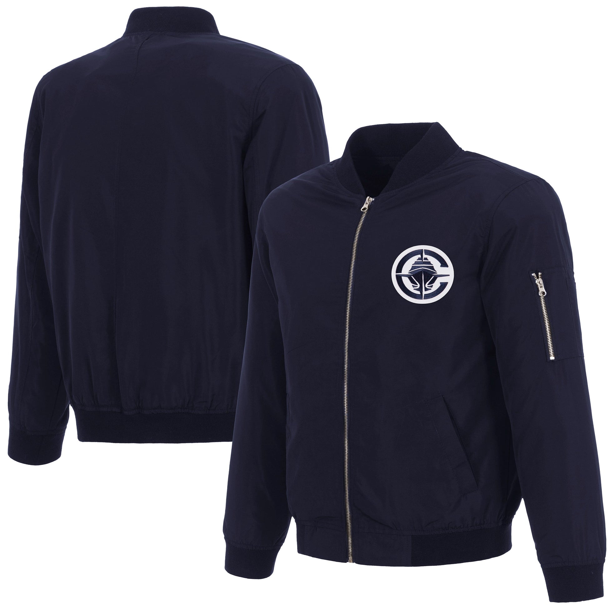 Los Angeles Clippers nylon bomber in navy with embroidered logos.