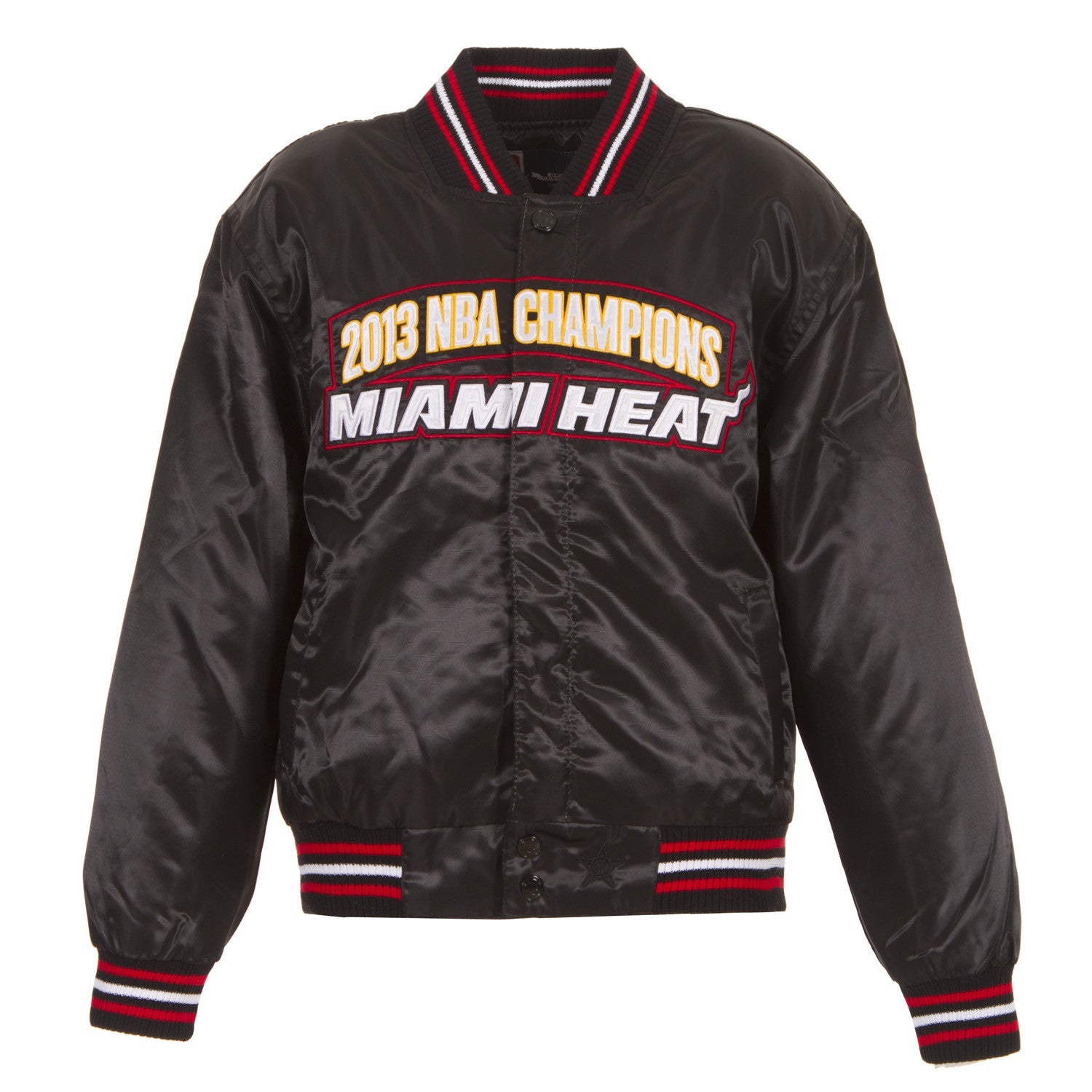 Miami Heat kid's matte sating championship jacket with quilted nylon lining and embroidered logos with satin appliqué.