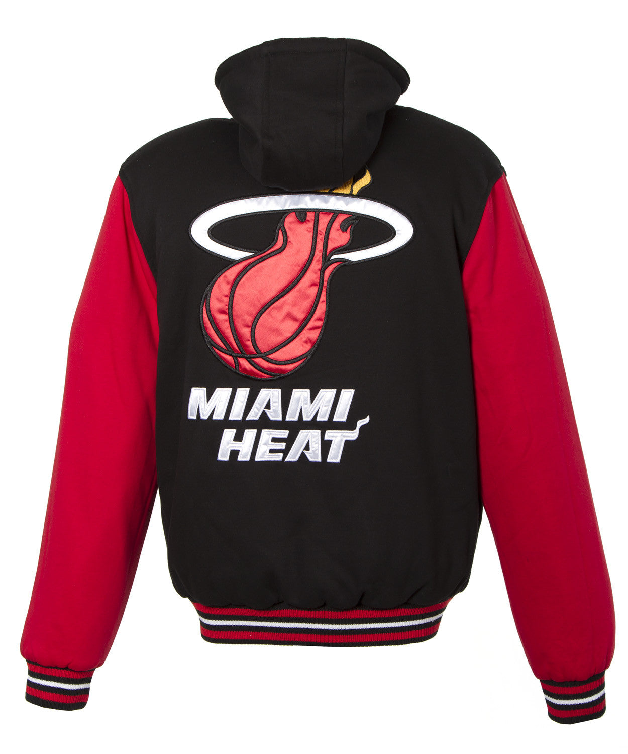 Miami Heat reversible two-tone fleece jacket in black-red with embroidered logos. Reverse side is nylon.