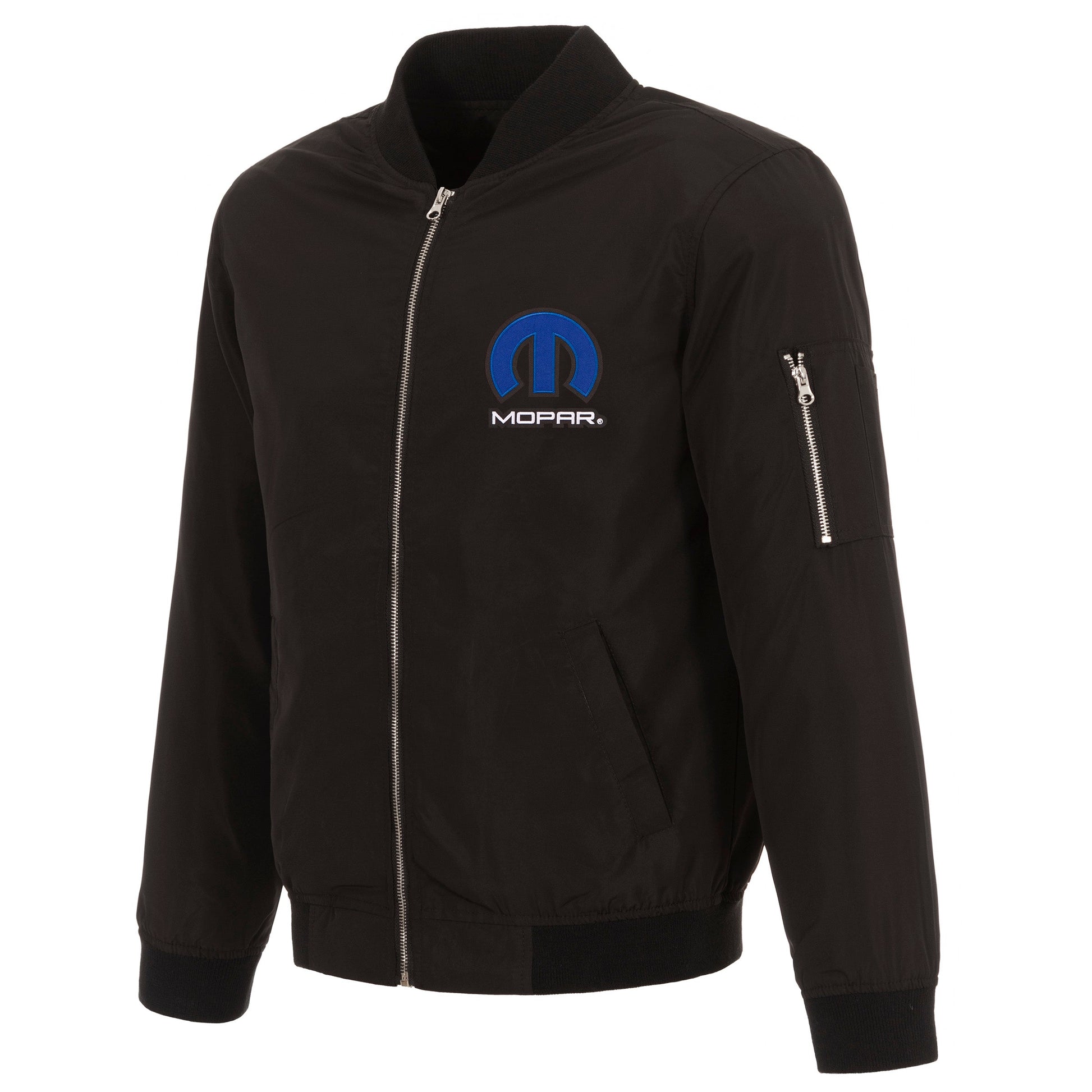 Mopar nylon bomber in black with embroidered logos.