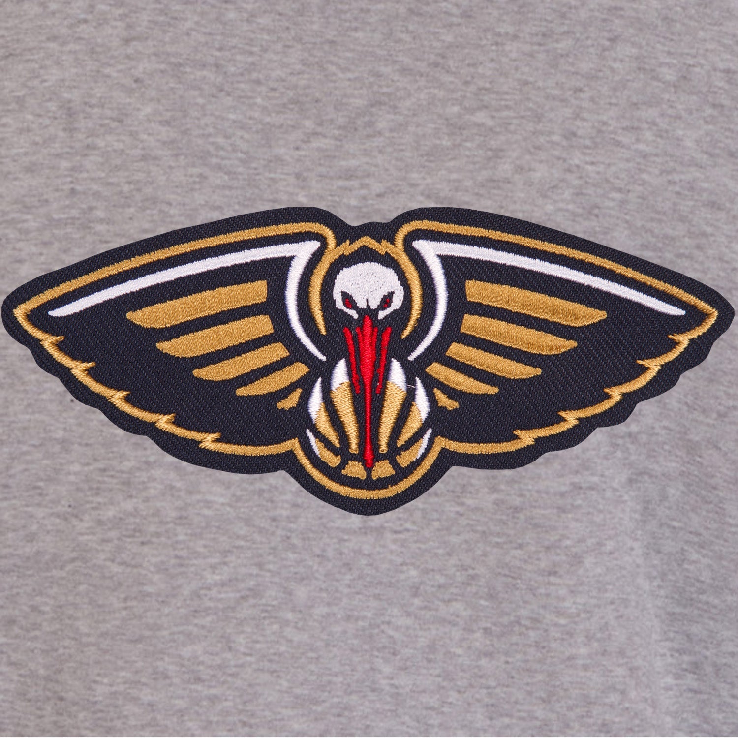 New Orleans Pelicans reversible two-tone fleece jacket in gray-navy with nylon lining and embroidered logos. (Front Logos Only)