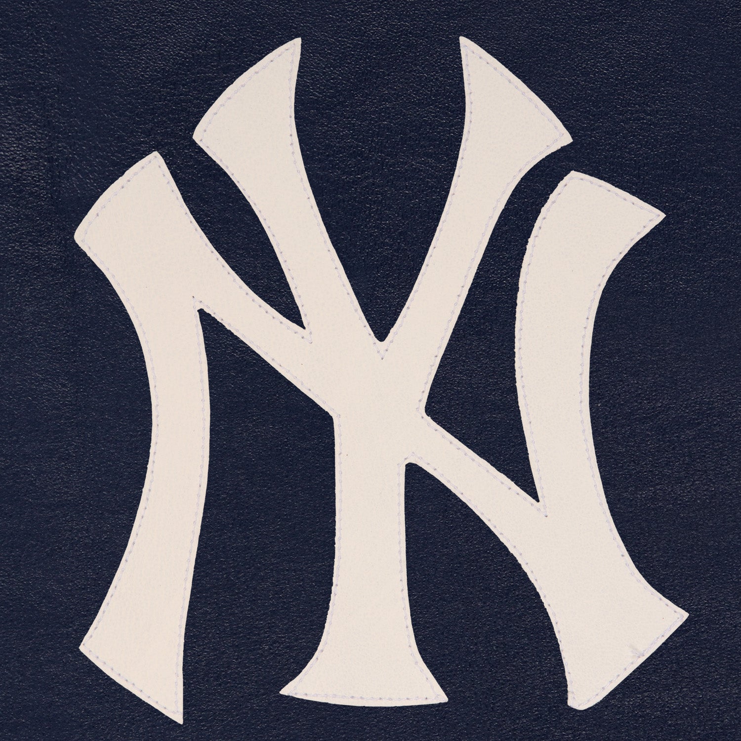 New York Yankees full leather varsity jacket in navy. Made in the USA. 100% leather body and sleeves with quilted nylon lining and leather logos, traditional snap front closure.