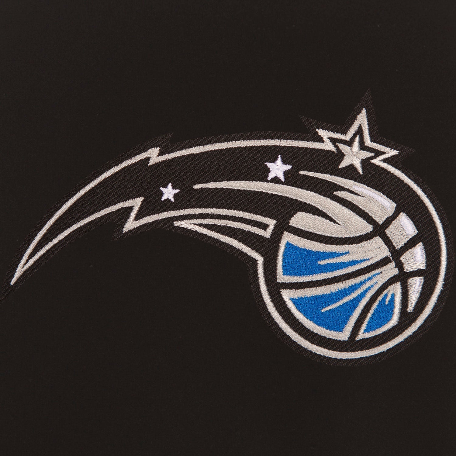 Orlando Magic reversible fleece jacket with Faux Leather sleeves in black-white with nylon lining and embroidered logos. (Front Logos Only)