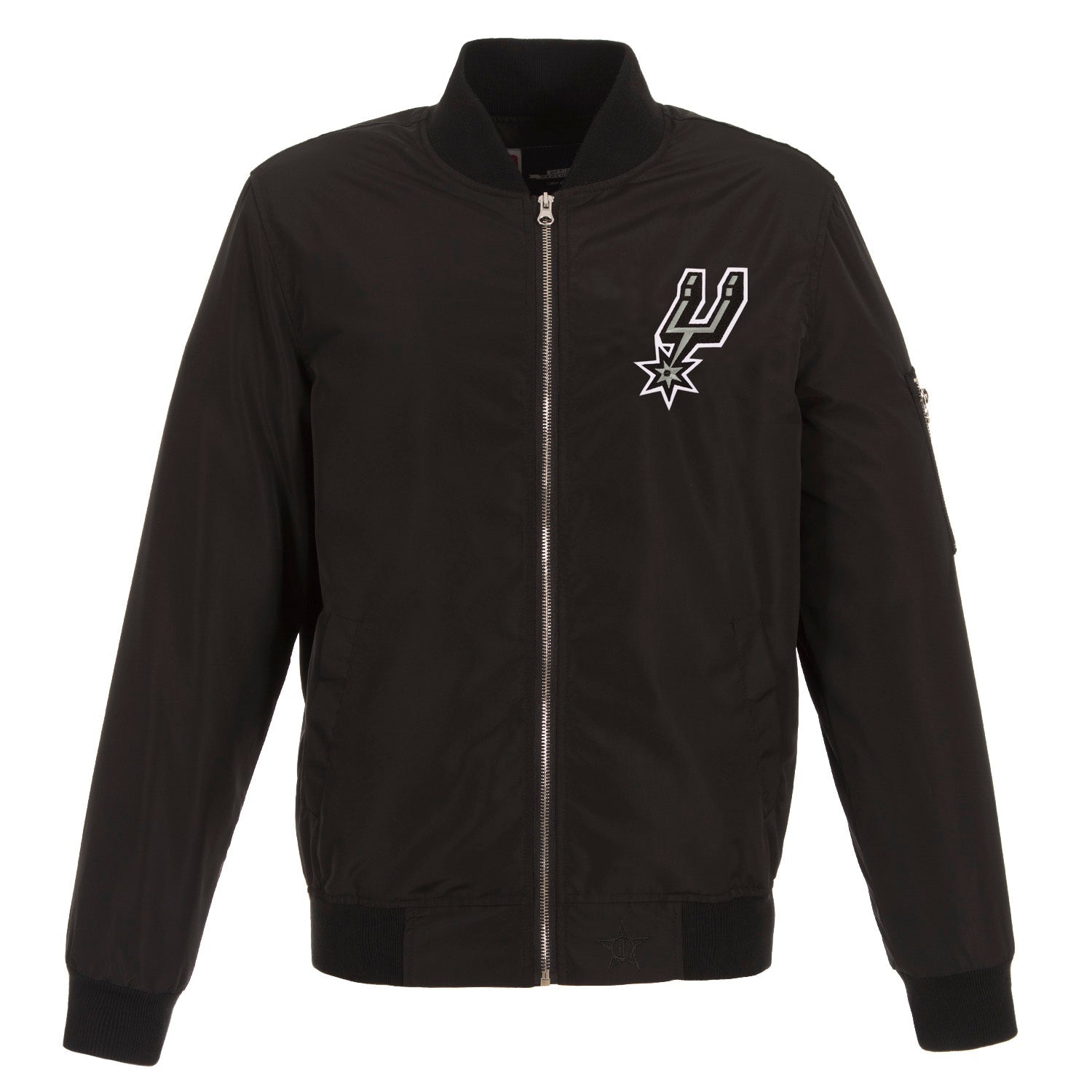 San Antonio Spurs nylon bomber in black with embroidered logos.