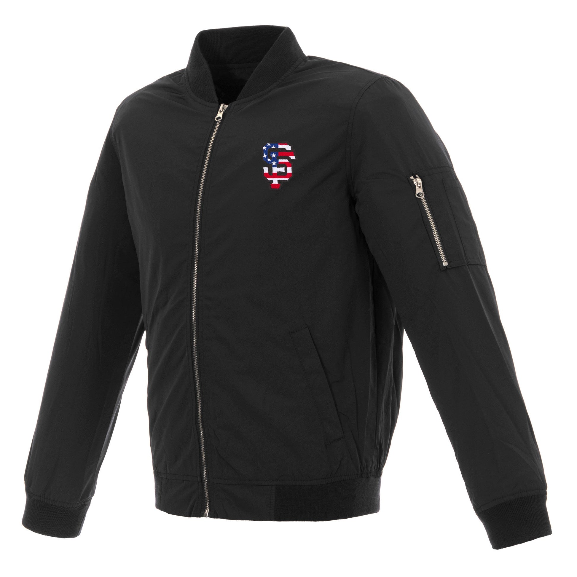 San Francisco Giants nylon bomber in black with embroidered logos.