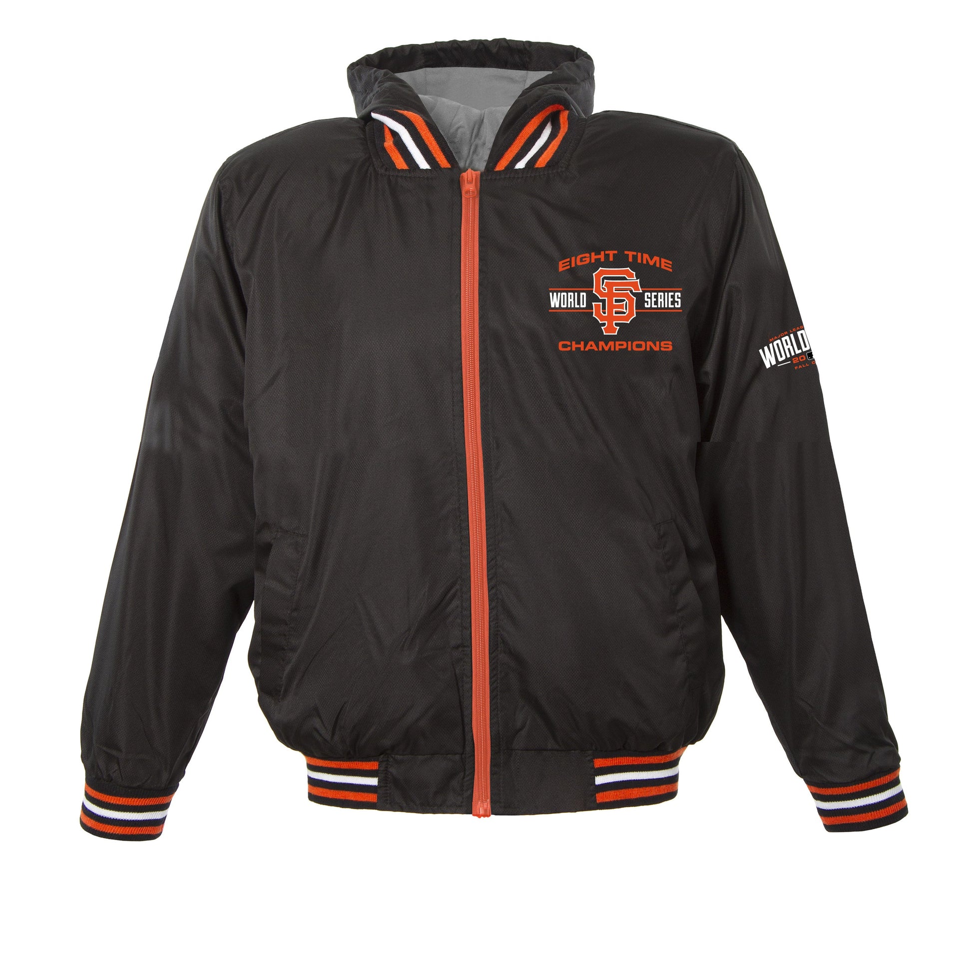 San Francisco Giants kid's ripstop nylon jacket in black with embroidered designs.