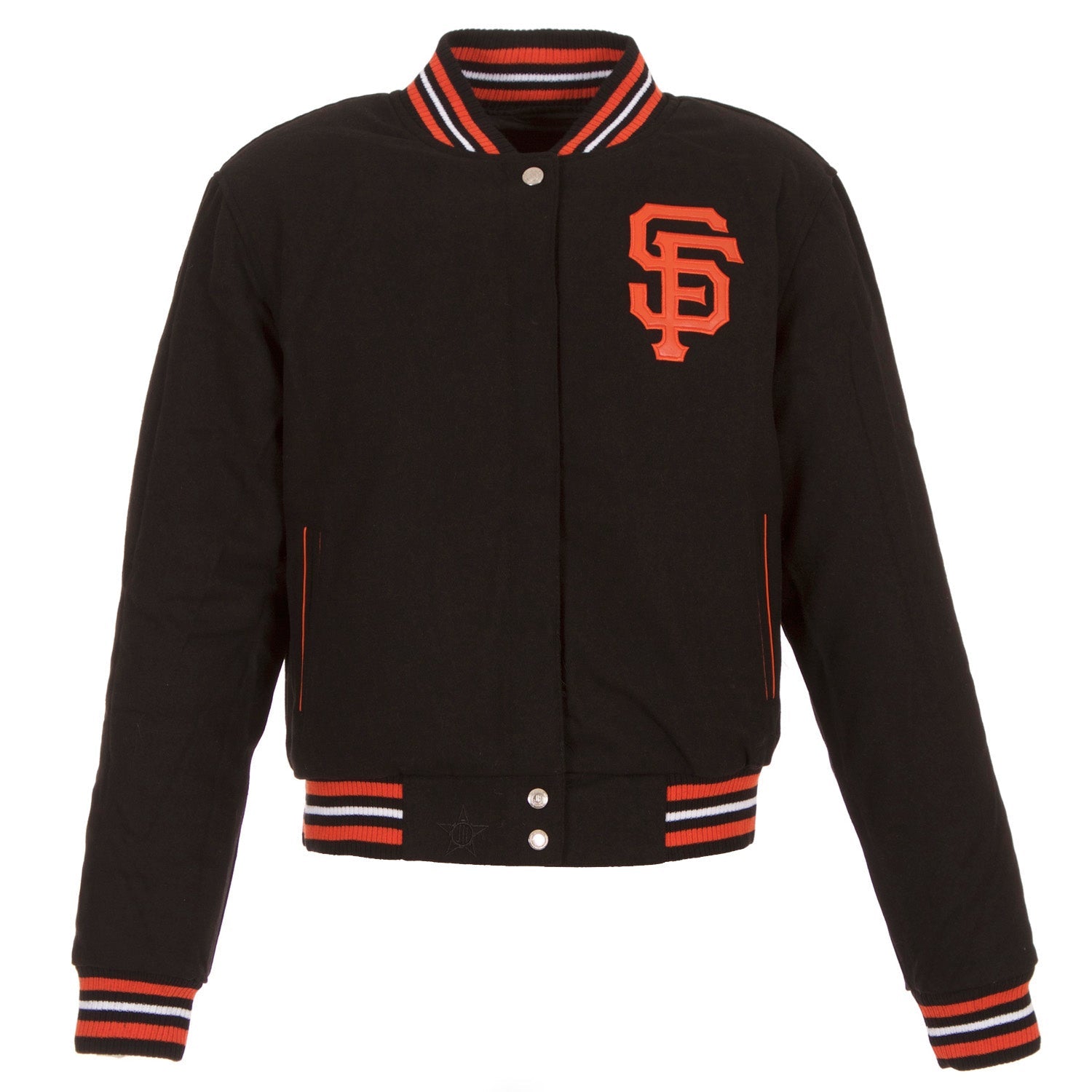 San Francisco Giants ladies reversible wool jacket in black with embroidered logos.