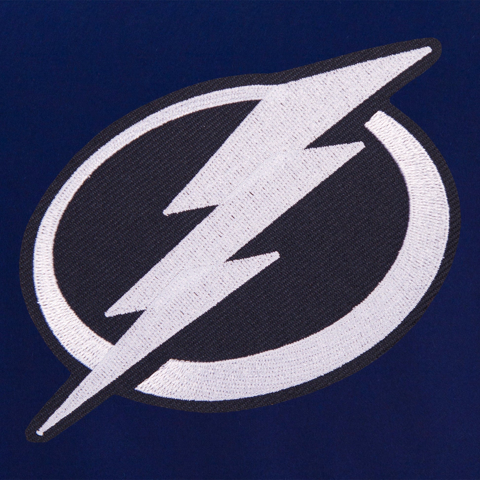 Tampa Bay Lightning All Wool Jacket with nylon lining in black and yellow with embroidered logos. Assembled in the USA. 55% wool 45% polyester body. Snap button closure.