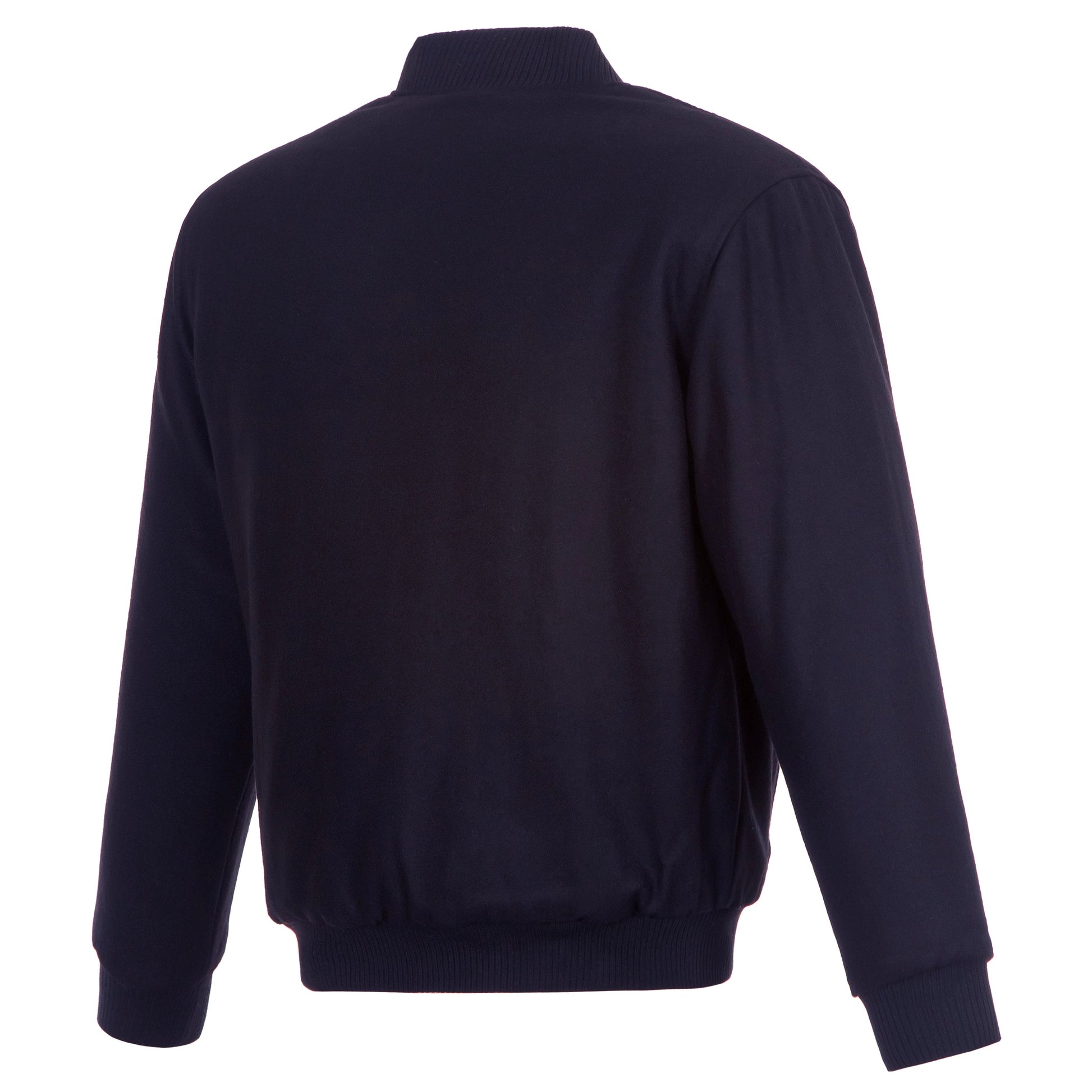 Tampa Bay Rays All Wool Jacket with nylon lining in navy with embroidered logos. Assembled in the USA. 55% wool 45% polyester body. Snap button closure.