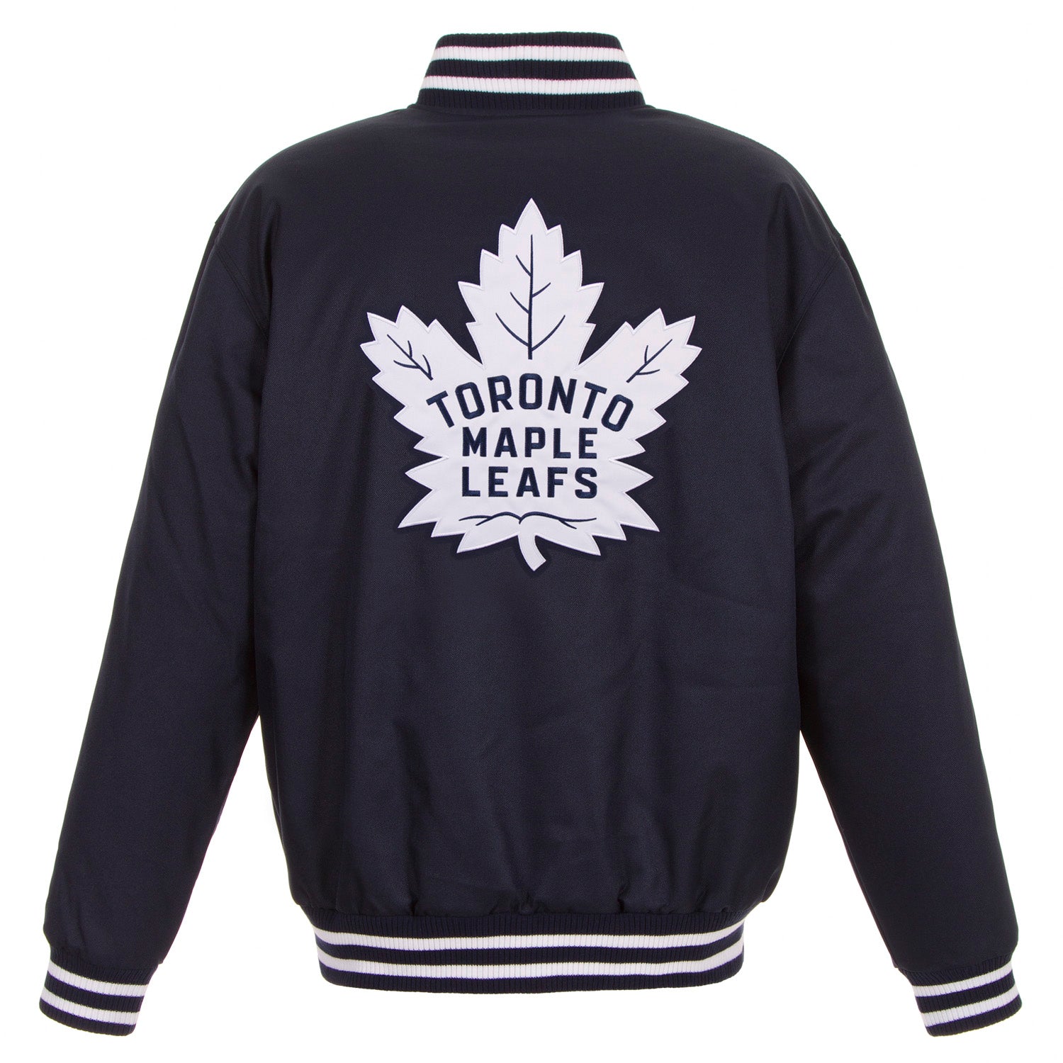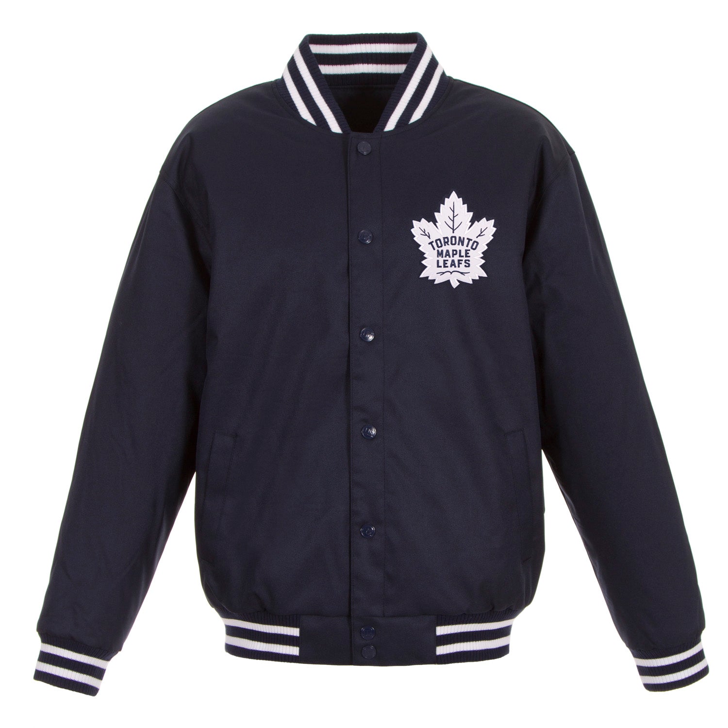 Toronto Maple Leafs poly-twill jacket in navy with quilted nylon lining and embroidered appliqué logos.