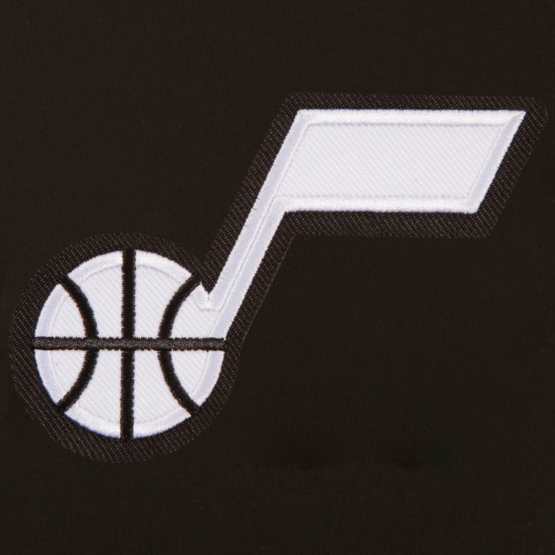 Utah Jazz reversible fleece jacket with Faux Leather sleeves in black and white with nylon lining and embroidered logos. (Front Logos Only)