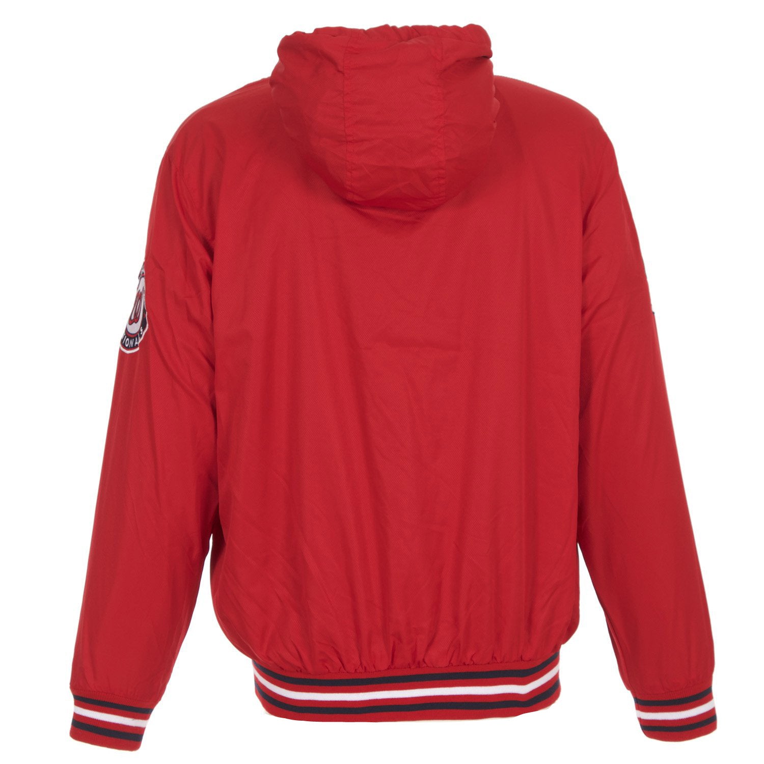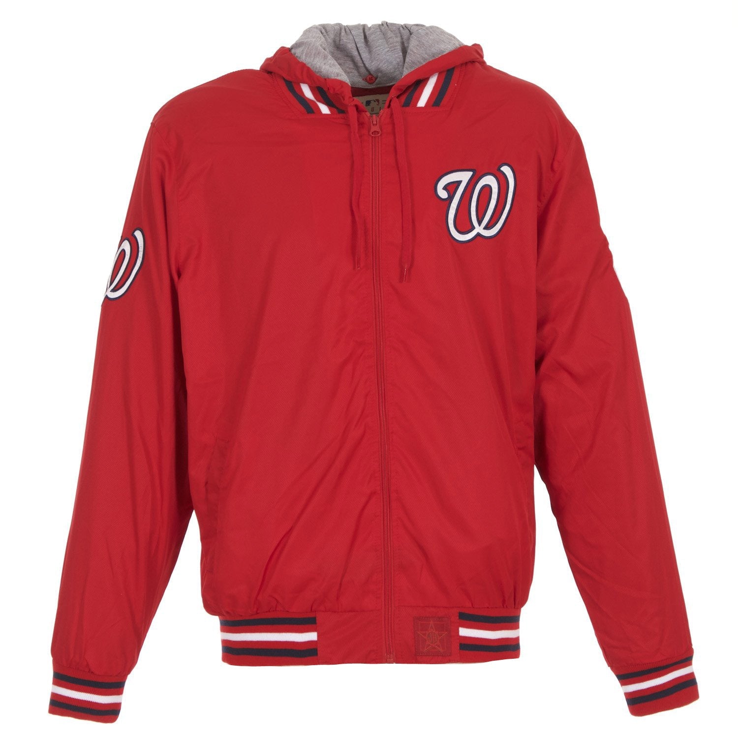 Washington Nationals ripstop nylon hooded jacket with 4 oz fleece lining in navy with embroidered logos with satin appliqué.